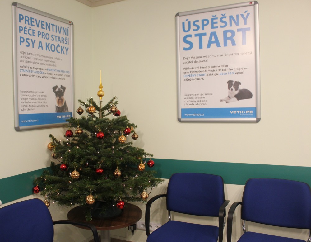 Vánoční stromek ve veterinární klinice Vethope